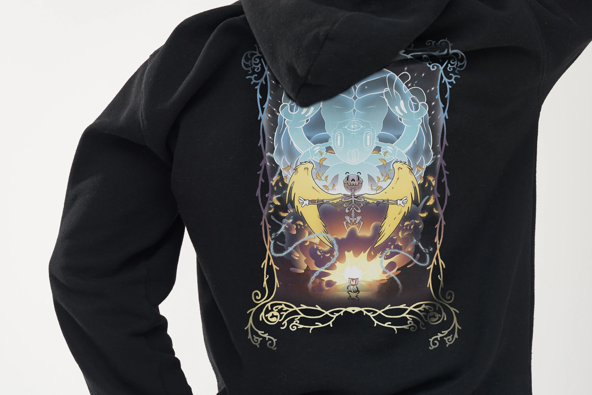 Step into the realm of bold fashion with the Ascension Hoodie. Designed for those who embrace mystery and confidence, this black hoodie is the perfect blend of comfort and statement-making style.